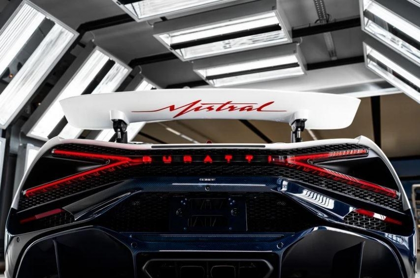 Không chỉ nổi bật với diện mạo ấn tượng, W16 Mistral còn sở hữu cụm đèn hậu chữ X đặc trưng, giúp tối ưu tính khí động học và làm mát khoang động cơ hiệu quả. Logo Bugatti thiết kế 3D được tích hợp bên trong cụm đèn này, tạo điểm nhấn độc đáo.