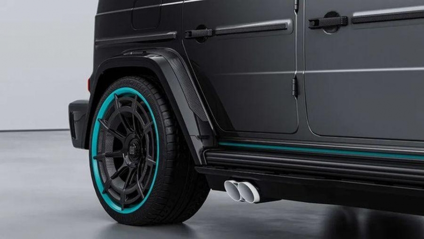 Điểm nhấn đặc biệt nằm ở bộ mâm 23 inch được viền xanh mòng két - màu sắc đặc trưng của đội Mercedes-AMG Petronas tạo nên sự liên kết chặt chẽ với di sản của Hamilton.