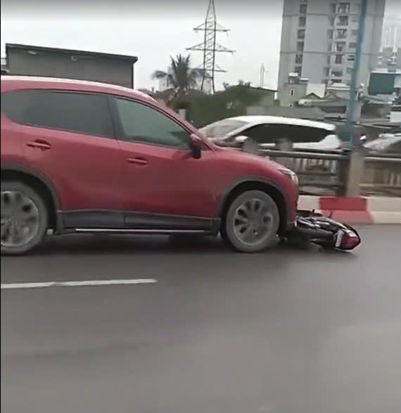 Sau khi xảy ra va chạm, thay vì dừng lại để giải quyết vụ việc, tài xế ô tô Mazda CX-5 đã tiếp tục di chuyển, kéo lê xe máy trên cầu Vĩnh Tuy theo hướng về Minh Khai (quận Hai Bà Trưng, Hà Nội).