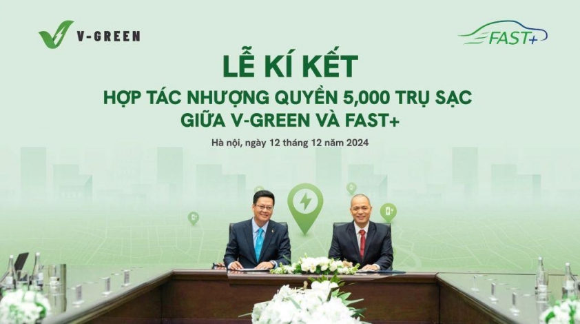 Công ty Cổ phần Phát triển Trạm sạc Toàn cầu V-GREEN và Công ty Cổ phần Trạm sạc Fast+ vừa ký kết thỏa thuận hợp tác nhượng quyền nhằm triển khai 5.000 trụ sạc xe điện VinFast trên khắp cả nước.