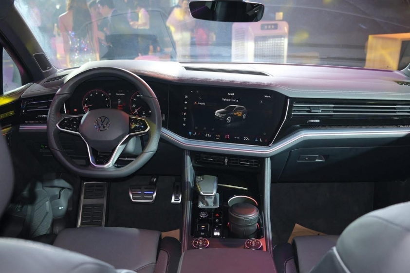 Khoang cabin của Highline và R-Line vẫn giữ bố cục quen thuộc nhưng được bổ sung hàng loạt tiện ích mới: ghế trước chỉnh điện 18 hướng với hỗ trợ đệm lưng và đệm đùi, nhớ 3 vị trí, kèm sưởi và làm mát; điều hòa tự động 4 vùng; cửa sổ trời toàn cảnh; màn hình HUD; hệ thống đèn viền 30 màu.