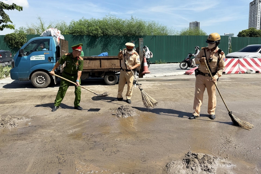 Ngay sau khi tiếp nhận thông tin, Đội CSGT đường bộ số 6 đã nhanh chóng có mặt tại hiện trường, phối hợp cùng công an phường và công nhân môi trường để phân luồng giao thông, đồng thời đổ cát và quét dọn khu vực có dầu loang, giảm thiểu nguy cơ tai nạn.