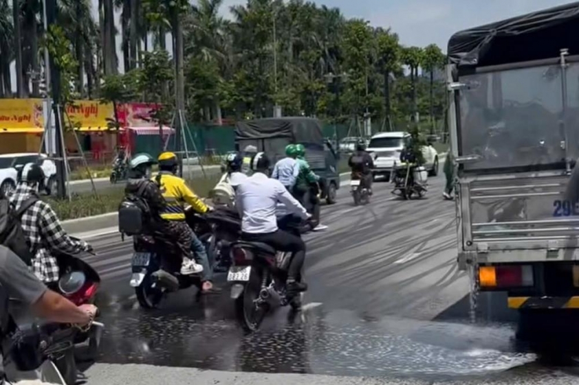 Lực lượng chức năng Hà Nội đang làm rõ vụ việc xe tải làm vỡ téc dầu khiến dầu tràn ra đường Lê Quang Đạo kéo dài, gây trơn trượt và khiến một người đi xe máy ngã.