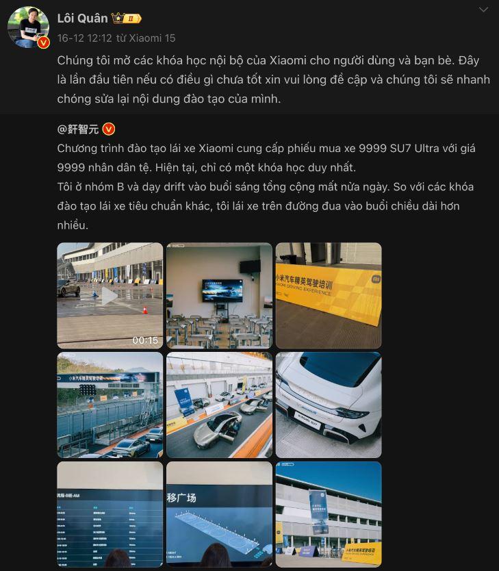 Đặc biệt, mỗi học viên còn được tặng một phiếu quà tặng trị giá tương đương học phí để đặt cọc mua mẫu xe điện hiệu suất cao Xiaomi SU7 Ultra. Điều này không chỉ làm tăng sức hấp dẫn của khóa học mà còn giúp khách hàng tiếp cận gần hơn với dòng xe điện tiên tiến này.