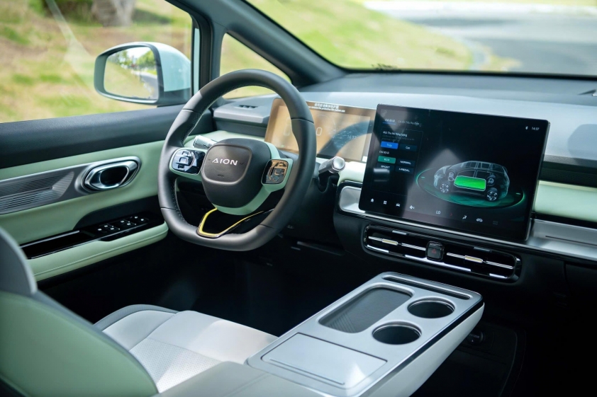 Nội thất của AION Y Plus bao gồm ghế lái chỉnh điện và làm mát ghế, cụm đồng hồ kỹ thuật số 10,25 inch, màn hình giải trí 14,6 inch kết nối Apple CarPlay, đèn nội thất LED Ambient Light 32 màu nhấp nháy theo nhạc và hệ thống âm thanh 6 loa DSP Bongiovi.