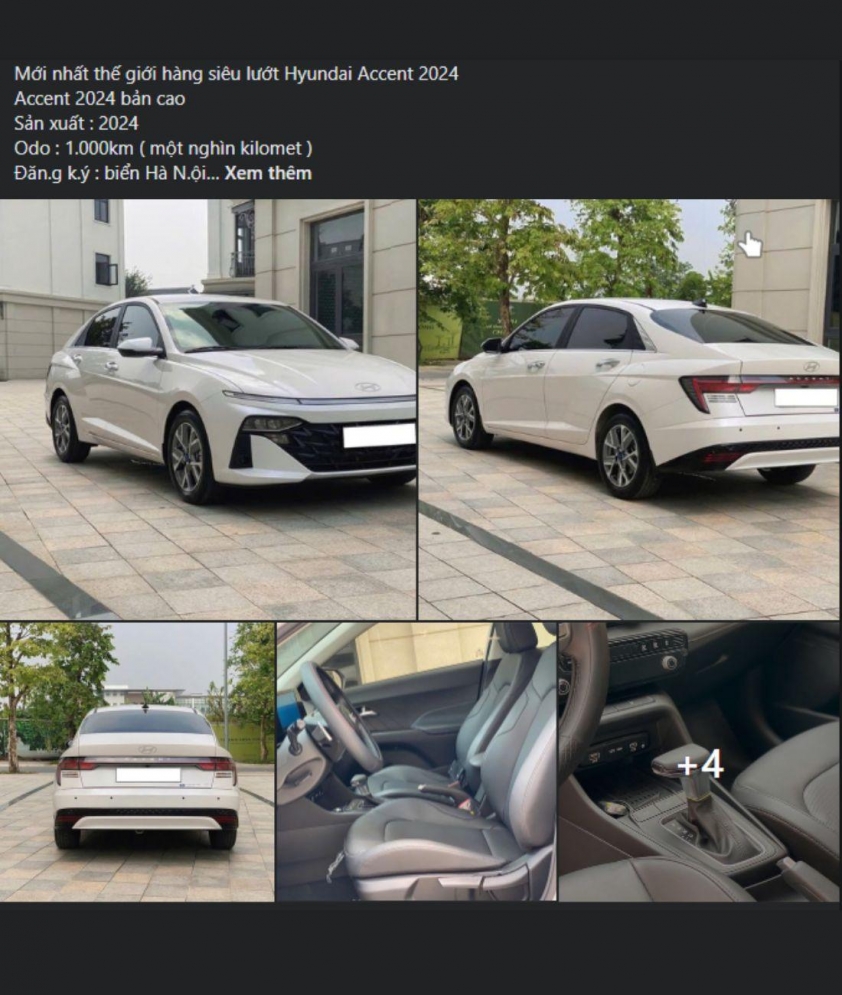 Theo thông tin ghi nhận từ thị trường xe cũ, một chiếc Hyundai Accent 2024, biển số Hà Nội, đang được chào bán với mức giá chỉ 56x triệu đồng.