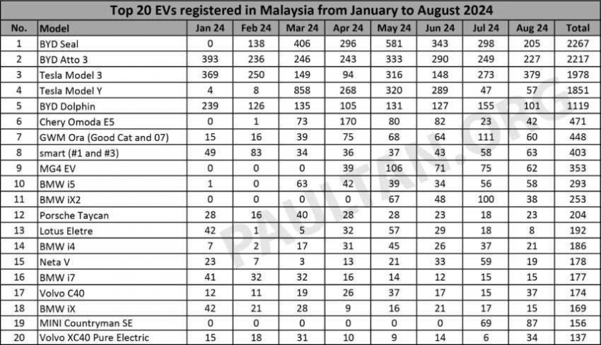 Trong tám tháng đầu năm 2024, mẫu xe điện BYD Seal dẫn đầu danh sách xe bán chạy nhất tại Malaysia, vượt qua các đối thủ như Tesla Model 3 và BYD Atto 3.