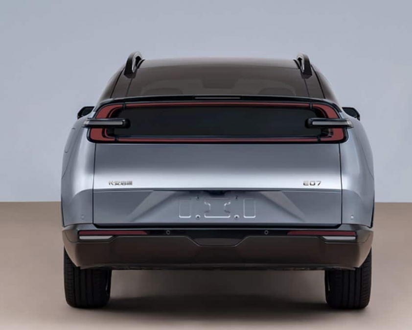 Đáng chú ý, E07 có thể thực hiện chuyển đổi chế độ giữa SUV và bán tải bằng cách mở mui sau để tự biến mình thành xe bán tải. Cả phía trước và phía sau xe đều có màn hình kỹ thuật số hiển thị các thông tin như tên xe và thông tin về pin.