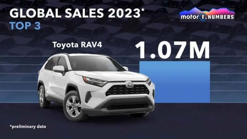 Tuy nhiên, Toyota không bị bỏ cách quá xa so với Tesla. Dữ liệu sơ bộ cho thấy Toyota RAV4 đứng thứ hai với 1,07 triệu xe đã bán trên toàn cầu trong năm 2023, còn Toyota Corolla xếp ngay sau ở vị trí thứ ba, ghi nhận 1,01 triệu đơn vị giao tới tay khách hàng.