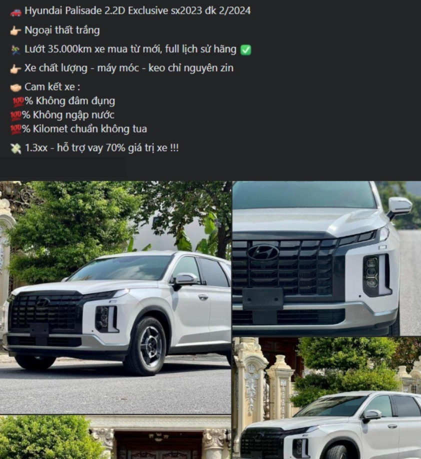 Trên thị trường xe cũ hiện nay, một chiếc SUV cỡ lớn Hyundai Palisade sản xuất năm 2023 đang được chào bán với giá khoảng 1,3xx tỷ đồng.