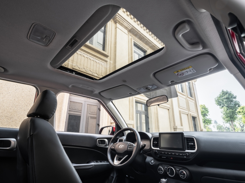 Bảng taplo xe nổi bật với màn hình đa thông tin và màn hình giải trí cảm ứng 8 inch điều khiển đa chức năng nằm ở vị trí trung tâm, tích hợp camera lùi. Màn hình của xe hỗ trợ đầy đủ kết nối Android Auto, Apple Carplay, Bluetooth. Đặc biệt Venue cũng trang bị cổng sạc dạng USB Type-C tiện dụng với khả năng sạc nhanh trên cả hàng ghế phía trước và phía sau, cùng với đó là hệ thống âm thanh 6 loa.