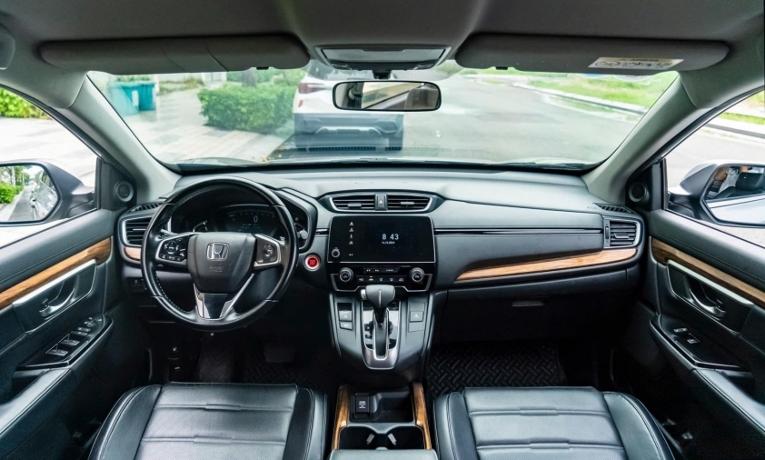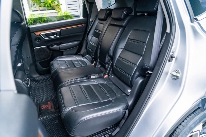 Bên trong, Honda CR-V G 2019 có 3 hàng ghế với tổng cộng 7 chỗ ngồi. Ghế ngồi được bọc da màu đen, ghế lái chỉnh điện 8 hướng với hỗ trợ bơm lưng, trong khi ghế phụ chỉnh cơ 4 hướng.