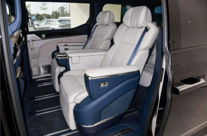 Ghế hành khách có thể được chỉnh điện 12 hướng và hỗ trợ chức năng mát-xa. Mỗi ghế đi kèm với loa đến từ Yamaha gắn trên tựa đầu. Một số tính năng khác bao gồm điều khiển từ xa bằng điện thoại di động, cập nhật OTA, nhận diện khuôn mặt, sạc không dây, đèn viền nội thất và màn hình điều khiển hàng ghế thứ hai đặt trên cửa trượt điện.