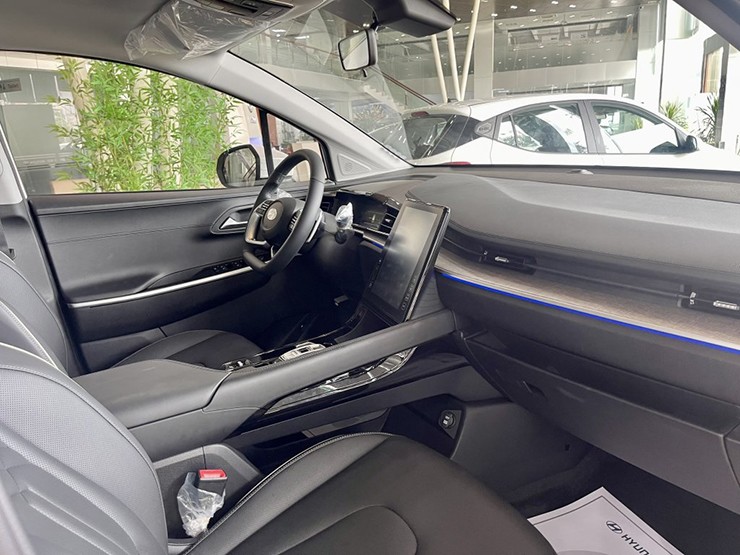 Bên trong khoang lái, Hyundai Custin sở hữu nội thất 3 hàng ghế với 2 ghế thương gia ở giữa. Ngoài ra, xe còn có vô-lăng tích hợp phím chức năng/lẫy chuyển số thể thao, bảng đồng hồ kỹ thuật số, màn hình cảm ứng trung tâm 10,4 inch, hệ thống âm thanh 6 loa, điều hòa tự động,...
