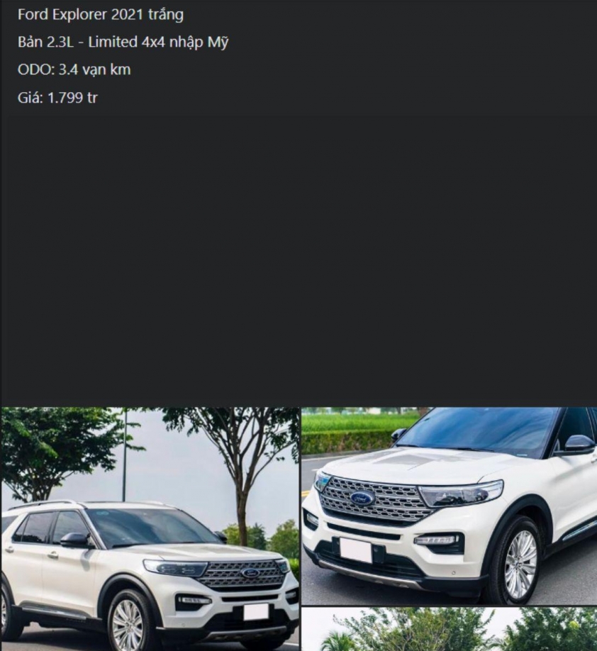 Trên thị trường ô tô đã qua sử dụng, một chiếc SUV cỡ lớn Ford Explorer đời 2021 đang được rao bán với giá hấp dẫn.