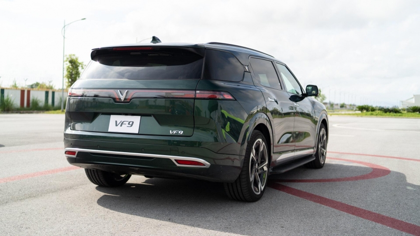 Dưới nắp ca-pô, VF 9 sở hữu hai động cơ tương tự VF 7, nhưng với khối pin lớn hơn, qua đó mang lại phạm vi hoạt động lên đến 600 km. Tuy nhiên, sau tay lái, VF 9 mang lại cảm giác nặng nề hơn đáng kể so với VF 7, đặc biệt là khi vào cua.