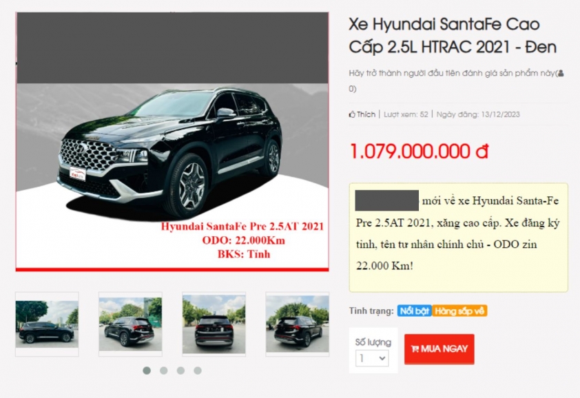 Theo khảo sát trên thị trường xe cũ, một chiếc Hyundai Santa Fe sản xuất năm 2021 đang được chào bán với mức giá 1,079 tỷ đồng.