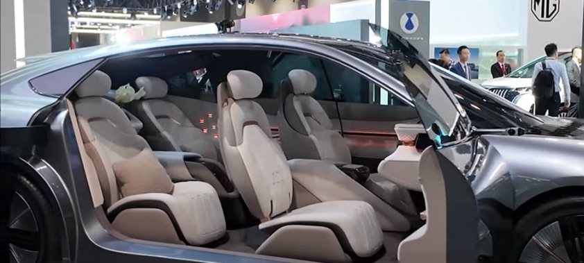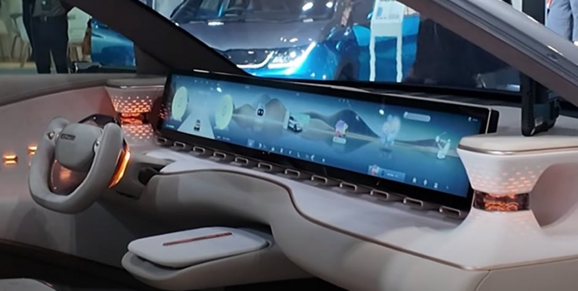 Tại gian hàng Skyworth, thương hiệu đã giải thích lý do đằng sau cái tên Skyhome của xe. Điều này đến từ triết lý biến phương tiện thành một môi trường “như ở nhà”. Xe có màn hình dài tới gần 1,5m trên bảng điều khiển, cùng với đó là vô lăng kiểu xe đua F1, đèn viền nội thất và cửa sổ trời toàn cảnh. Gương chiếu hậu cũng đã được thay thế bằng camera.