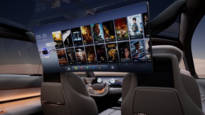 Hệ thống thông tin giải trí của Skyhome sử dụng chipset Qualcomm 8295 chạy hệ điều hành Xiaowei GPT của Skyworth. Hành khách ngồi hàng ghê sau có thể trải nghiệm màn hình TV cỡ lớn (được gập gọn lên trần xe) cùng tủ lạnh mini.