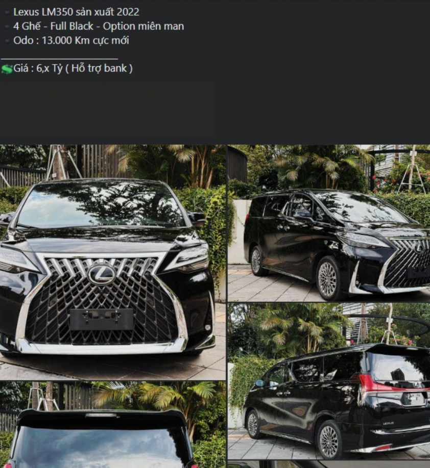 Trên thị trường xe cũ hiện tại, một chiếc Lexus LM 350 sản xuất năm 2022 đang được chào bán với mức giá 6,x tỷ đồng.
