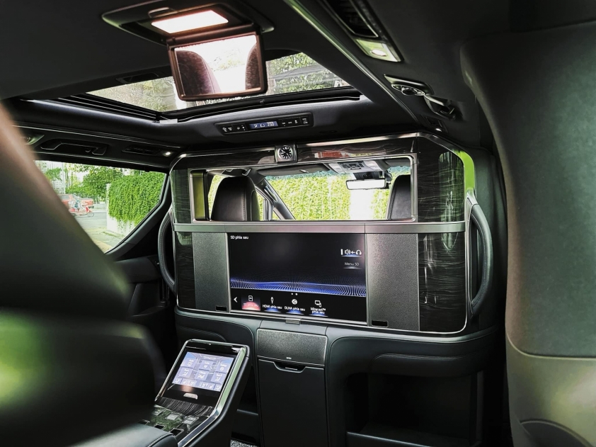 Đặc biệt, với cấu hình 4 chỗ, không gian nội thất chia thành 2 khoang bằng vách ngăn tích hợp màn hình giải trí kích thước tới 26 inch có thể điều khiển từ xa. Một khoang dành cho ông chủ, một khoang cabin. Tấm kính điều chỉnh điện có thể nâng lên, hạ xuống, có thể làm mờ hoặc trong suốt giúp người ngồi phía sau tận hưởng không gian riêng tư, biến nơi đây thành nơi gặp gỡ khách hàng, đối tác.