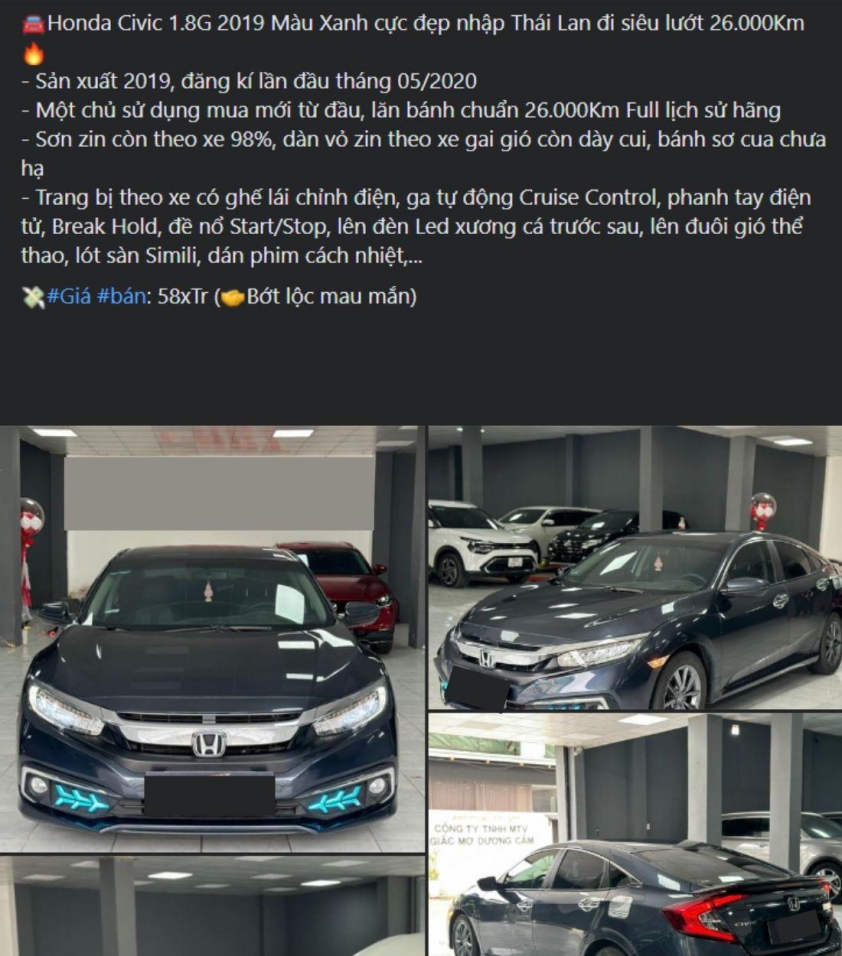 Tham khảo thị trường xe cũ hiện nay, một chiếc Honda Civic sản xuất năm 2019 đang được chào bán với mức giá khoảng 58x triệu đồng.