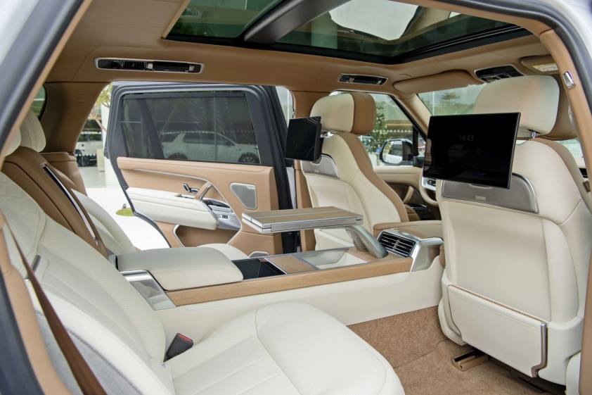 Tất cả các mẫu Range Rover SV đều được trang bị màn hình giải trí 13.1 inch cho hàng ghế sau. Trang bị độc quyền riêng cho mẫu SV, đây là màn hình lớn nhất từng được lắp trên một chiếc Range Rover. Người ngồi sau cũng sẽ có một chiếc ghế thương gia chỉnh điện, có đệm đỡ bắp chân, bệ đỡ chân, tích hợp thông gió, sưởi, massage đá nóng. Bên cạnh đó là các tính năng cao cấp khác như tủ lạnh, bàn để ly, màn hình điều khiển 8 inch giữa 2 ghế, tai nghe không dây,...