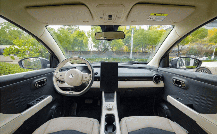 Bên trong, nội thất Yue 01 được thiết kế tối giản. Bảng điều khiển trung tâm có màn hình điều khiển trung tâm 10,1 inch đặt theo chiều dọc, bảng đồng hồ LCD 7 inch, vô lăng hai chấu phẳng dưới và cửa gió tròn.