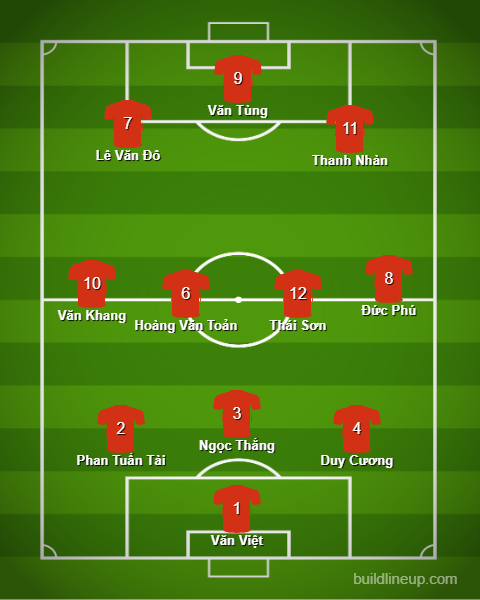 Tiền vệ: Đức Phú - Thái Sơn - Văn Toản - Văn Khang