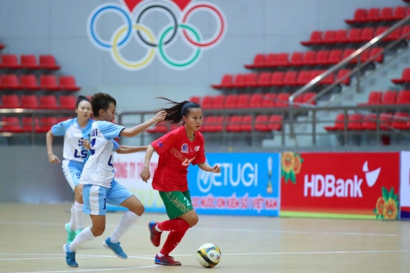 Dù vậy, trình độ nhỉnh hơn giúp Thái Sơn Nam TP.HCM có được điều mình cần. Sau tình huống lộn xộn trước vòng cấm đối phương ở phút thứ 7, Bùi Thị Trang nhanh chóng tung cú sút uy lực gỡ hòa 1-1. Bàn thắng này khiến TP.HCM gặp rất nhiều khó khăn và phải chịu áp lực lớn từ hàng công đối thủ. Phút thứ 10, cầu thủ Thái Sơn Nam TP.HCM thi đấu không tập trung và để mất bóng ở giữa sân. K’Thủa chuyền bóng thông minh để Thùy Trang đệm bóng cận thành nâng tỉ số lên 2-1 cho TP.HCM. Nửa cuối hiệp 1 chứng kiến nỗ lực của Thái Sơn Nam nhưng họ vẫn chưa có được bàn thắng.