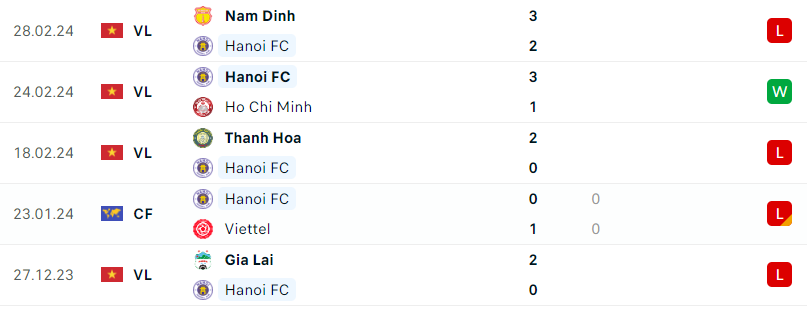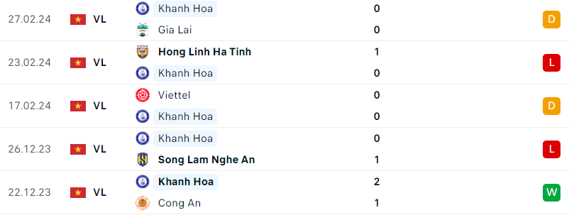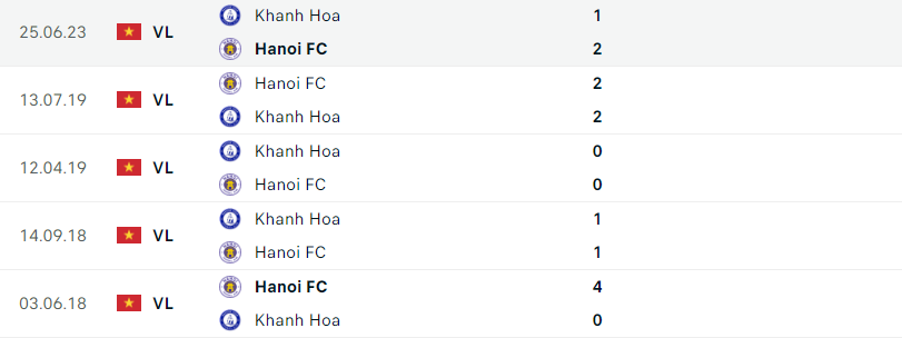Phong độ gần đây Khánh Hòa vs Hà Nội