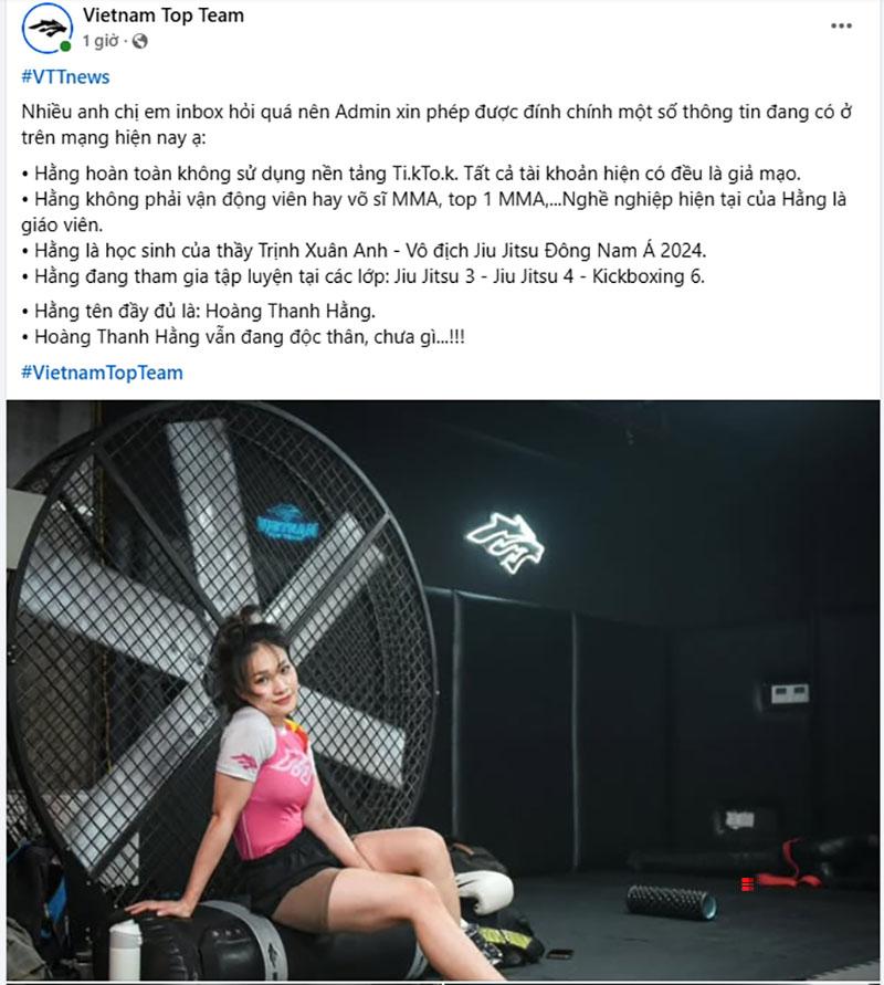Rất nhiều người đang thắc mắc danh tính của chị đẹp MMA kia là ai. Mới đây, Vietnam Top Team, nơi cô gái đang tập luyện, đã công bố một số thông tin đáng chú ý của cô.
