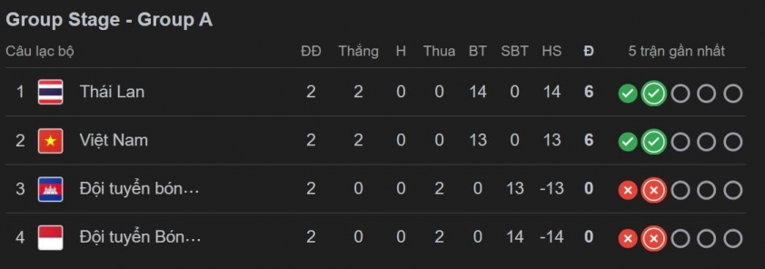 Dù đã ghi tới 13 bàn chỉ sau 2 trận, tuyển nữ Việt Nam vẫn đang ở thế bất lợi so với Thái Lan. Nguyên nhân là bởi đối thủ cũng lần lượt thắng đậm Campuchia và Indonesia, giữ sạch lưới và thậm chí ghi nhiều hơn Việt Nam 1 bàn. Điều này đồng nghĩa, để đoạt ngôi đầu bảng, thầy trò HLV Mai Đức Chung buộc phải đánh bại Thái Lan.