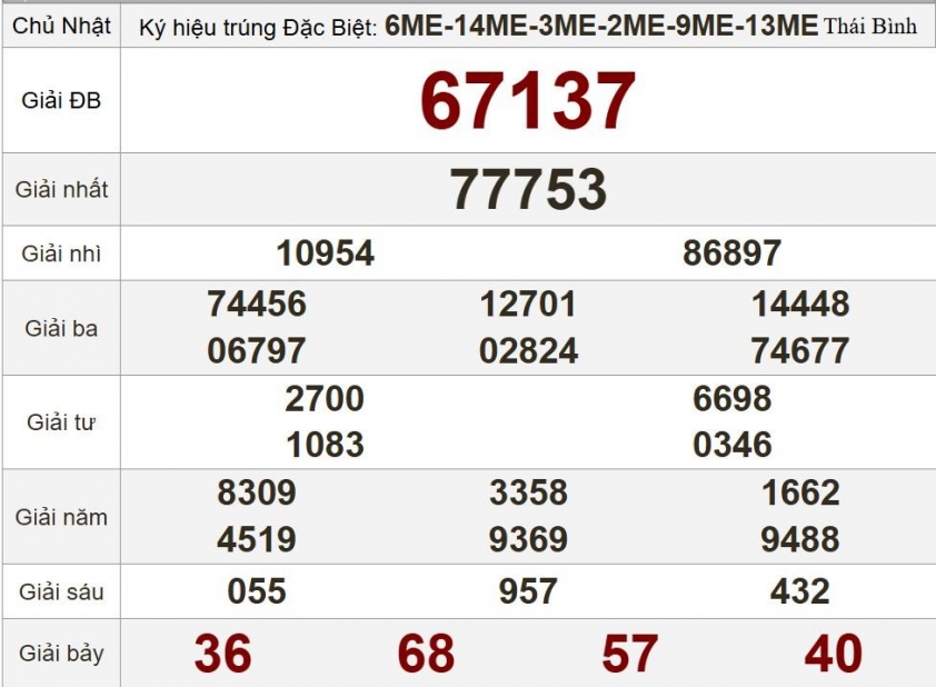- Chủ nhật là ngày quay số mở thưởng tại Thái Bình