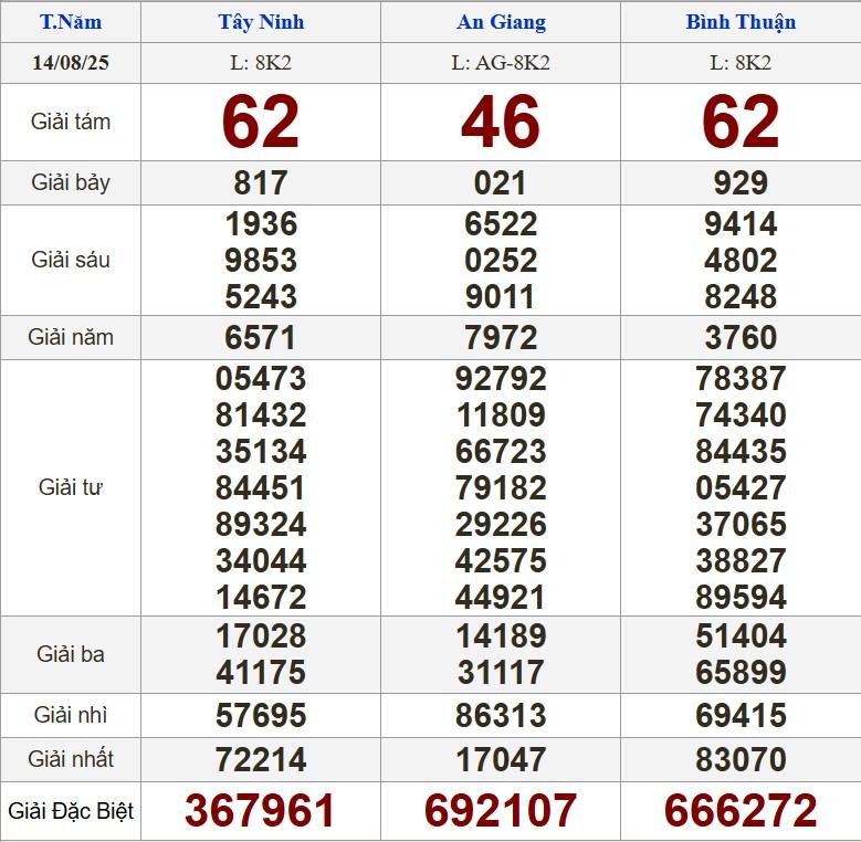 XSMN 14/8/2025 - Kết quả xổ số miền Nam hôm nay 14/8/2025