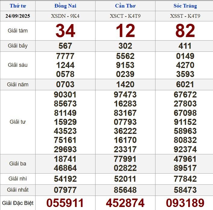 XSMN 25/9/2025 - Kết quả xổ số miền Nam hôm nay 25/9/2025