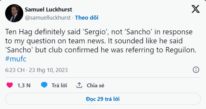 Tuy nhiên, bằng một cách nào đó thì các phóng viên đã nhầm giữa Reguilon và Jadon Sancho. Hệ quả là cơ quan truyền thông lớn tại Anh là Sky Sports News còn đưa tin rằng Jadon Sancho đã quay trở lại tập luyện. Nhà báo Samuel Luckhurst của tờ Manchester Evening News mới đây đã phải đính chính lại rằng HLV Erik Ten Hag đề cập đến là Sergio Reguilon chứ không phải là Jadon Sancho.