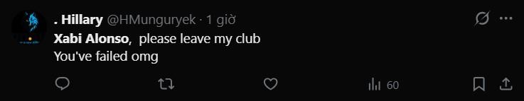 Dù Alonso nhấn mạnh mùa giải còn dài và cơ hội vẫn rộng mở, nhưng người hâm mộ vẫn kêu gọi chiến lược gia Tây Ban Nha thể hiện nhiều hơn tinh thần chiến đấu và quyết tâm. Giữa áp lực từ kết quả và sự kỳ vọng khổng lồ của CĐV, Xabi Alonso cần tìm cách vực dậy tinh thần đội bóng để tránh những kết quả tiêu cực tiếp theo.