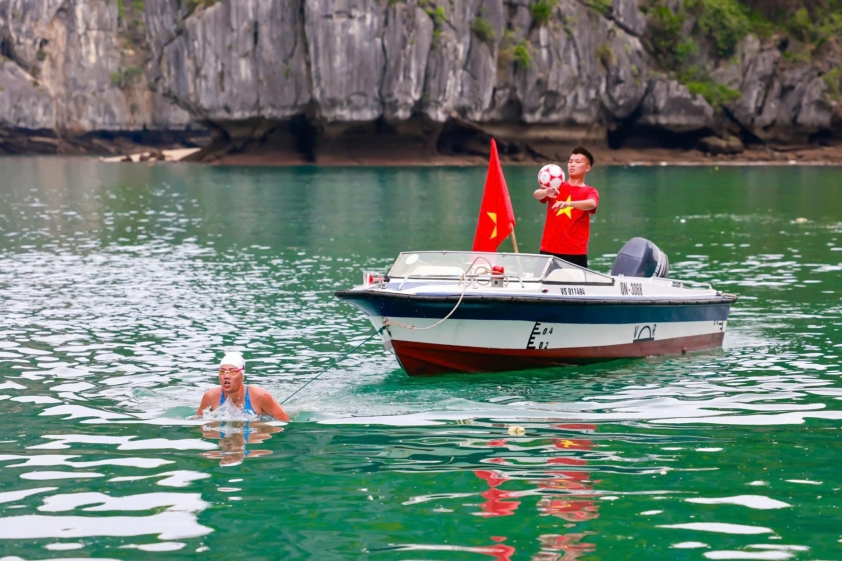 Lần đầu tiên tại Việt Nam, một màn kết hợp độc đáo giữa bơi kéo cano và tâng bóng nghệ thuật trên mặt biển đã lập kỷ lục tại Vịnh Hạ Long, với sự góp mặt của Nguyễn Thị Ánh Viên và Đỗ Kim Phúc.