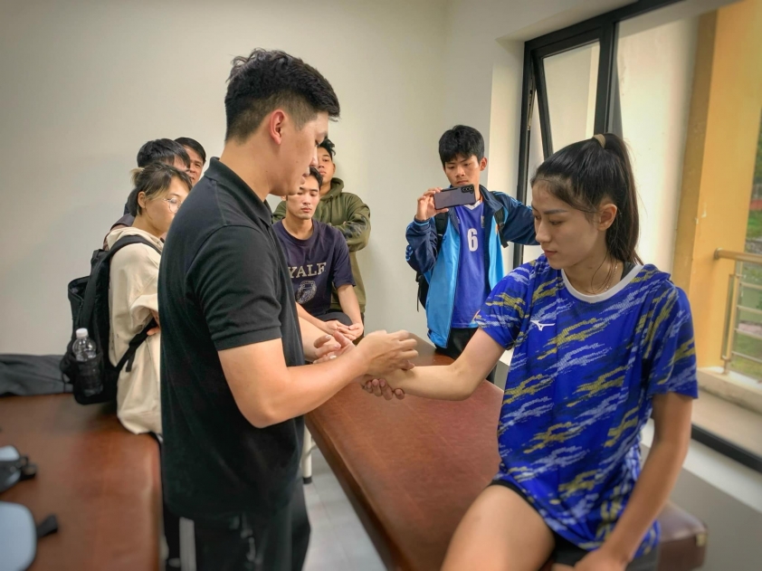 Đối chuyền tuyển bóng chuyền nữ Việt Nam được thị phạm tay nghề của bác sĩ thể thao nổi tiếng - Nguyễn Ngọc Anh Tuấn.