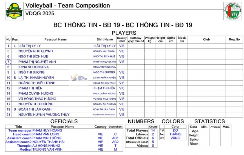 Danh sách cầu thủ Thông tin - Đông Bắc giai đoạn 2 giải bóng chuyền VĐQG 2025