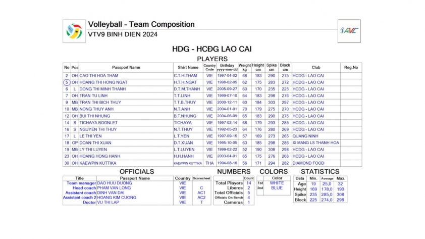 Danh sách cầu thủ HCĐG Lào Cai tại Cúp VTV9 - Bình Điền 2024