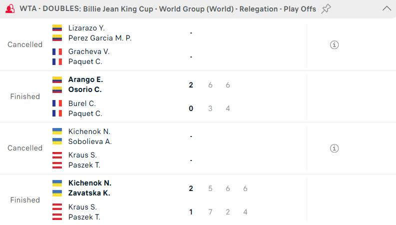 Kết quả tennis WTA Billie Jean King Cup - Play-off đôi nữ