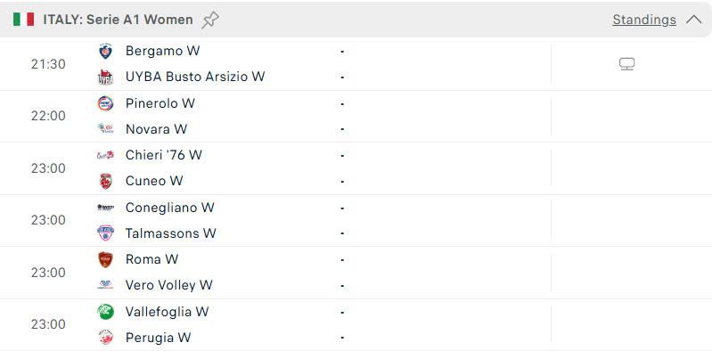 Lịch thi đấu bóng chuyền giải VĐQG Ý