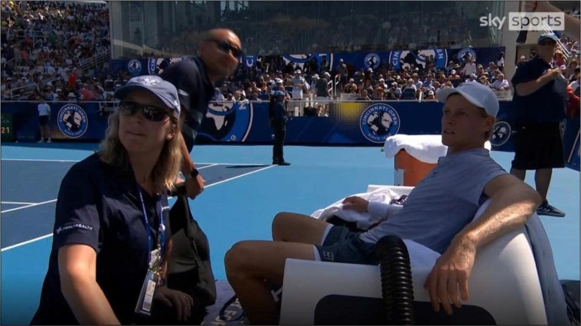 Nhiều ý kiến cho rằng anh gặp chấn thương hông hoặc đùi phải, trong khi một số khác lo ngại về tình trạng sức khỏe tổng thể. Trước sự chứng kiến của khán giả lấp kín khán đài, Sinner nhanh chóng mất thế trận. Anh bị bẻ giao bóng ba lần liên tiếp, rơi vào thế bị dẫn 0-5 và sau đó buộc phải xin dừng trận.
