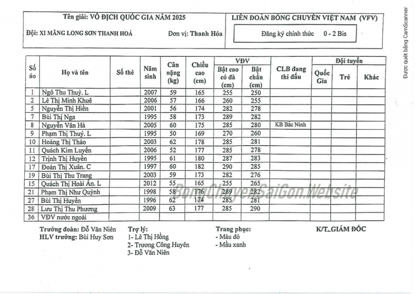Danh sách cầu thủ XMLS Thanh Hóa giai đoạn 2 giải bóng chuyền VĐQG 2025