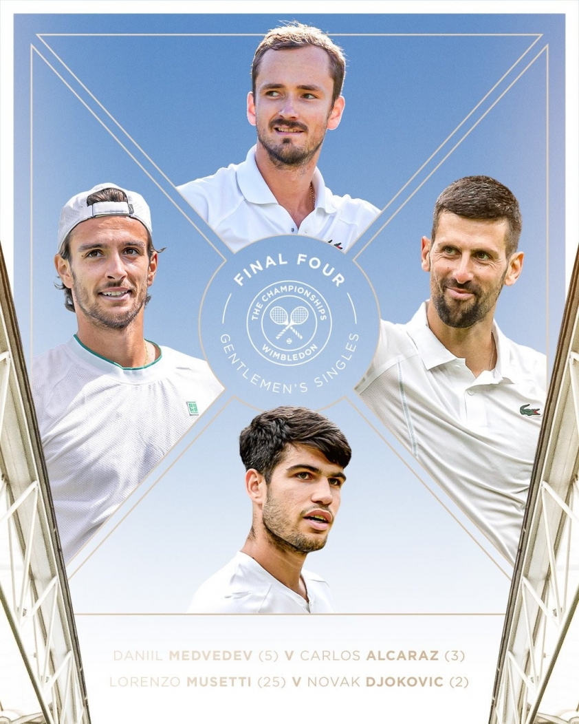 Ở trận bán kết còn lại, Lorenzo Musetti của Ý sẽ đối đầu với nhà vô địch Wimbledon bảy lần Novak Djokovic trên sân Trung tâm. Musetti, một tay vợt Ý 22 tuổi khác giống như Sinner, đã tiến vào vòng bán kết Grand Slam đầu tiên của mình tại SW19 sau khi đánh bại Taylor Fritz với tỷ số 3-6, 7-6(5), 6-2, 3-6, 6-1.