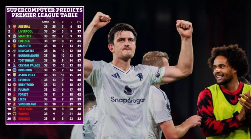 Không chỉ MU, bảng dự đoán của siêu máy tính cũng hé lộ nhiều bất ngờ khác ở nhóm đầu. Arsenal được dự đoán sẽ kết thúc chuỗi 11 năm trắng tay tại Premier League, với 80,9 điểm, cao hơn Liverpool (77,1 điểm) và Manchester City (72,6 điểm). Siêu máy tính tính toán rằng Pháo thủ sẽ có khoảng 24,6 trận thắng, 7,2 trận hòa và 6,2 trận thua, đủ để họ giành chức vô địch trong mùa giải này.