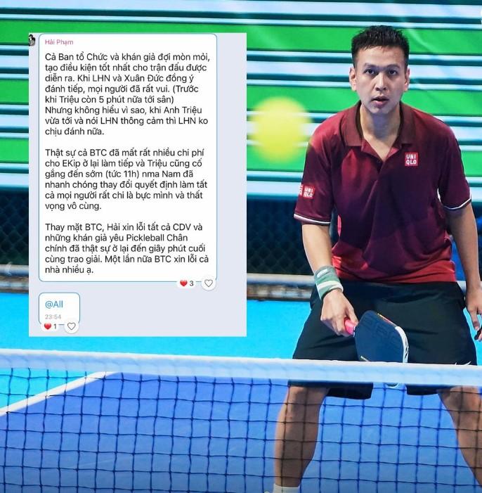 Không chỉ gây ảnh hưởng đến trận chung kết ở TP.HCM, Triệu "Cầu Lông" còn bỏ cuộc ở trận tranh hạng 3 tại Hà Nội, khiến các khán giả ở đó cũng phải chờ đợi trong thất vọng. Điều này, kết hợp với việc tay vợt Quang Dương rút lui vì chấn thương, khiến một ngày thi đấu quan trọng không có trận nào diễn ra, làm mất đi niềm tin của khán giả đối với các giải đấu pickleball.