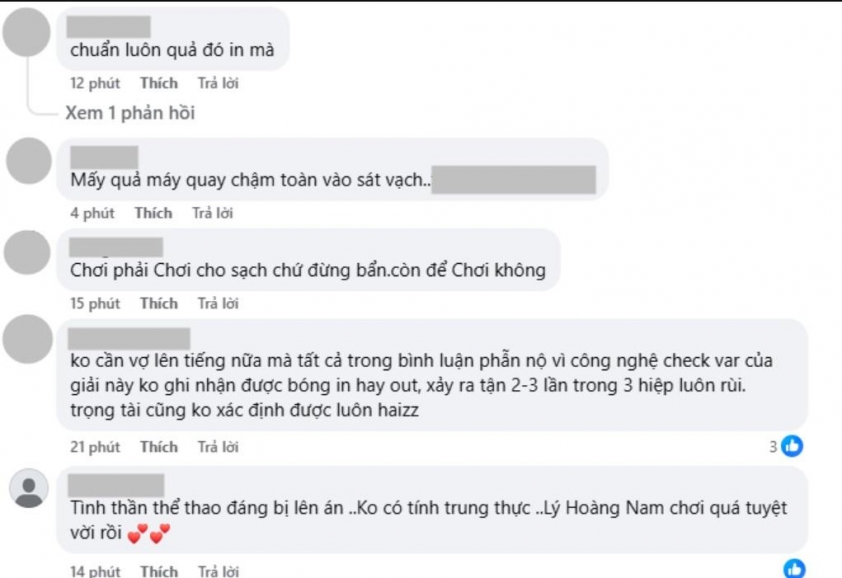 Một bên đứng về phía Hoàng Nam, cho rằng anh đã bị xử ép và thua oan. Họ chia sẻ lại khoảnh khắc Hoàng Nam ngã lăn ra sân hét “Quá đáng” như minh chứng cho sự bất công. Rất nhiều bình luận xuất hiện với sự đồng cảm mạnh mẽ: “Pha bóng ở bên trong rõ ràng, trọng tài xử out thì thật khó chấp nhận”.